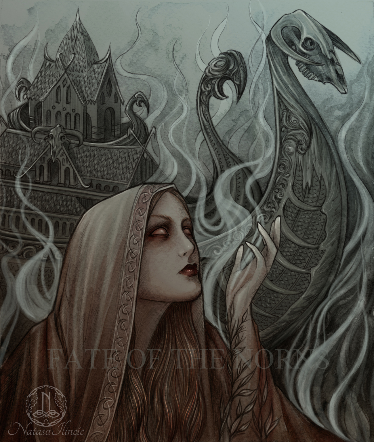 Volva's Vision by Natasa Ilincic for the tabletop RPG Fate of Norns' The Illuminated Edda.